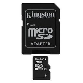 Kingston 4 GB microSDHC Class 4 Flash Memory Card SDC4/4GBET [Amazon Frustration-Free Packaging] for $9.99. Qualifies for free Super Saver shipping.